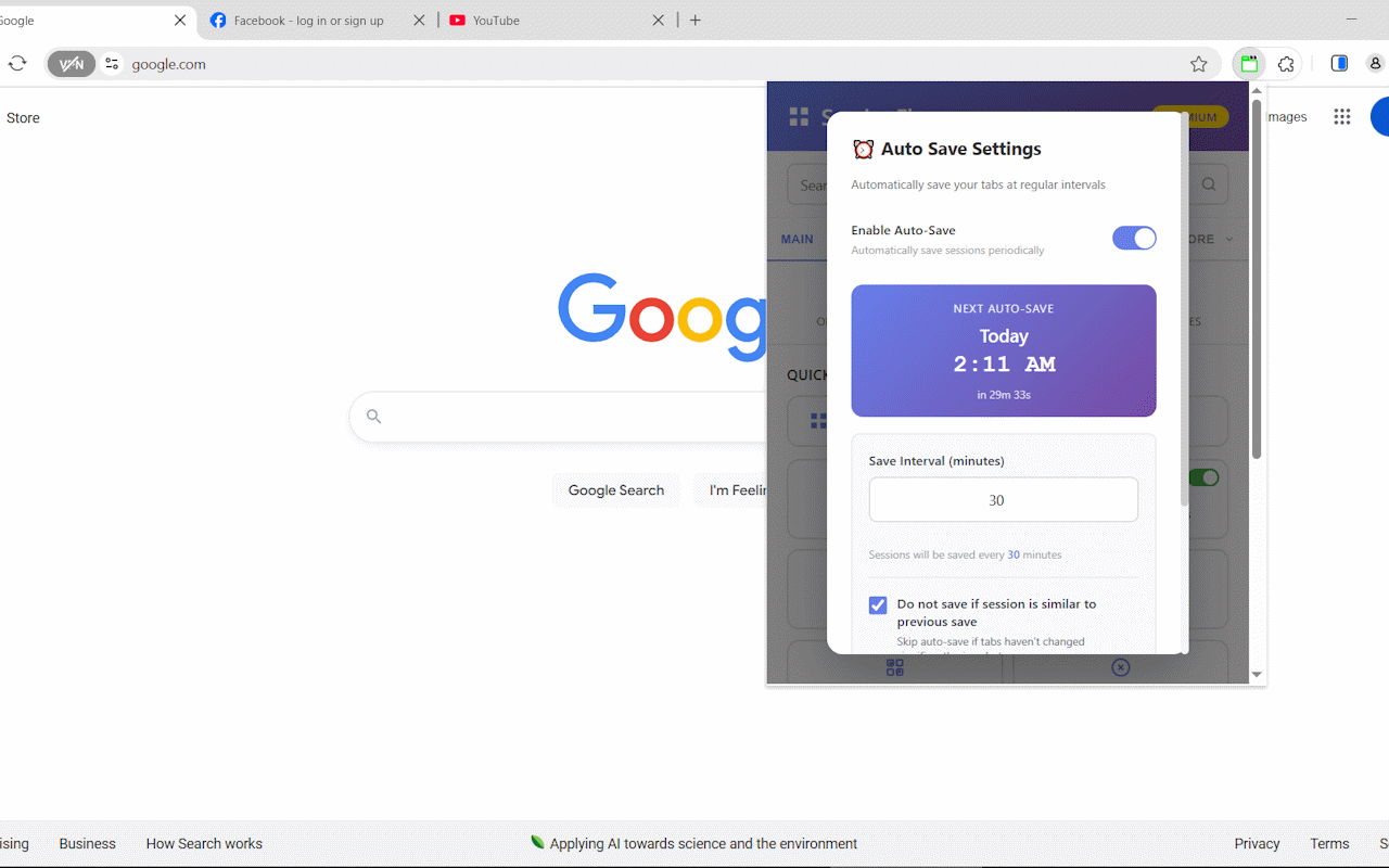 Unlock powerful automation with SessionFlow Premium’s advanced feature set. Auto-save functionality preserves sessions at scheduled intervals, ensuring never losing important work due to browser crashes or accidental closures. Intelligent duplicate detection prevents saving identical sessions, while smart hibernation automatically suspends inactive tabs to conserve system memory and improve browser performance. Configure hibernation rules based on inactivity periods, whitelist essential sites, and maintain optimal browser performance automatically. Premium users enjoy unlimited session storage, priority support, and access to cutting-edge productivity features.